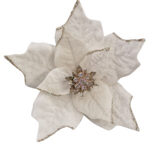 Krémová umelá vianočná ruža na stromček je krásna ozdoba, ktorá pomáha vytvoriť sviatočnú atmosféru a dodáva vianočnému stromčeku elegantný nádych. Je vhodná aj ako dekorácia do vianočných aranžmánov a adventných vencov.