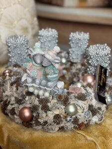 Adventný veniec tyrkysovo-ružový s myšami 28x15cm