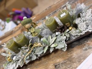 Adventný aranžmán so zelenými sviečkami 48x21x20cm