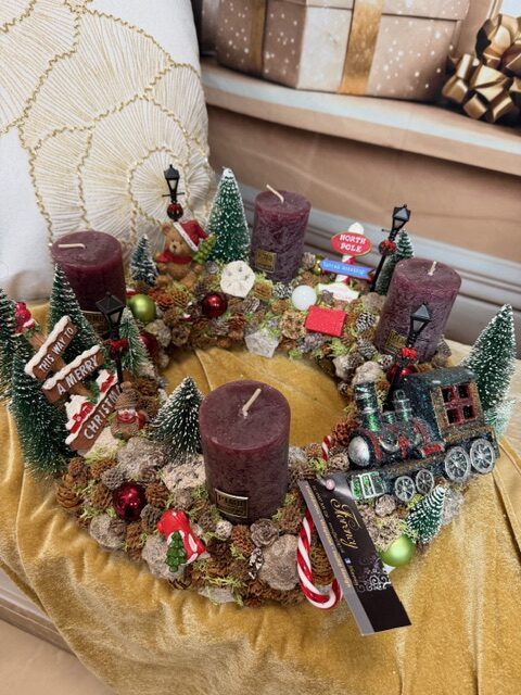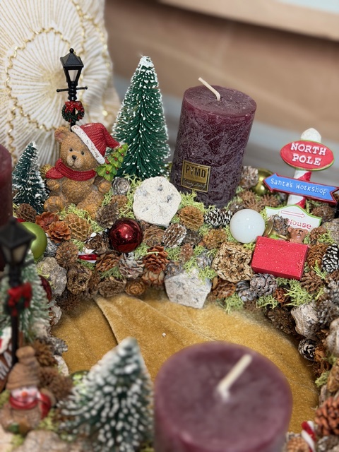 Adventný veniec s mackom a vláčikom 35x18cm