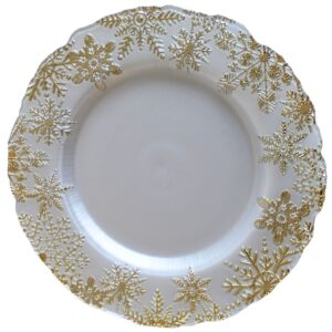 Sklenený tanier v elegantnom bielo-zlatom prevedení je vhodný ako vianočná dekorácia na sviatočný stôl. Vynikne aj ako podklad pre aranžmány.