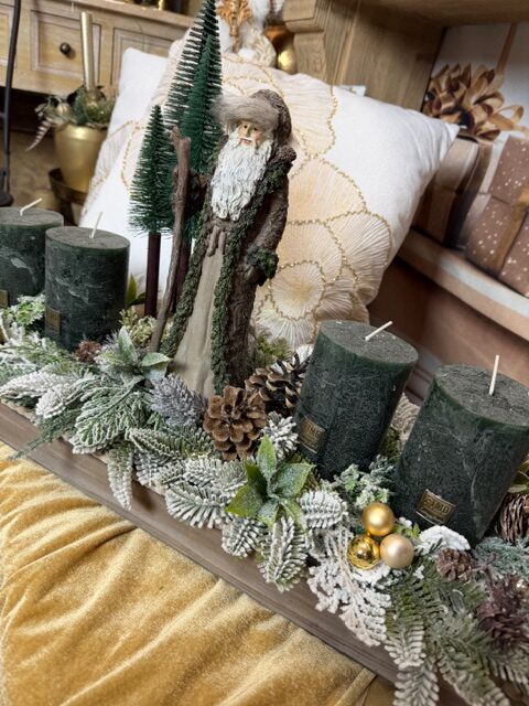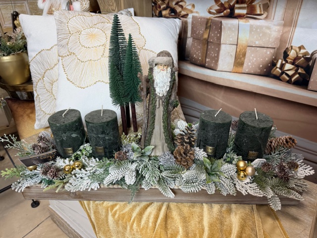Zelený adventný aranžmán so Santom 64x28x37cm