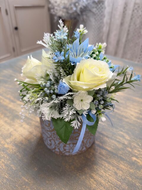 Celoročný modrý aranžmán 21x16x22cm