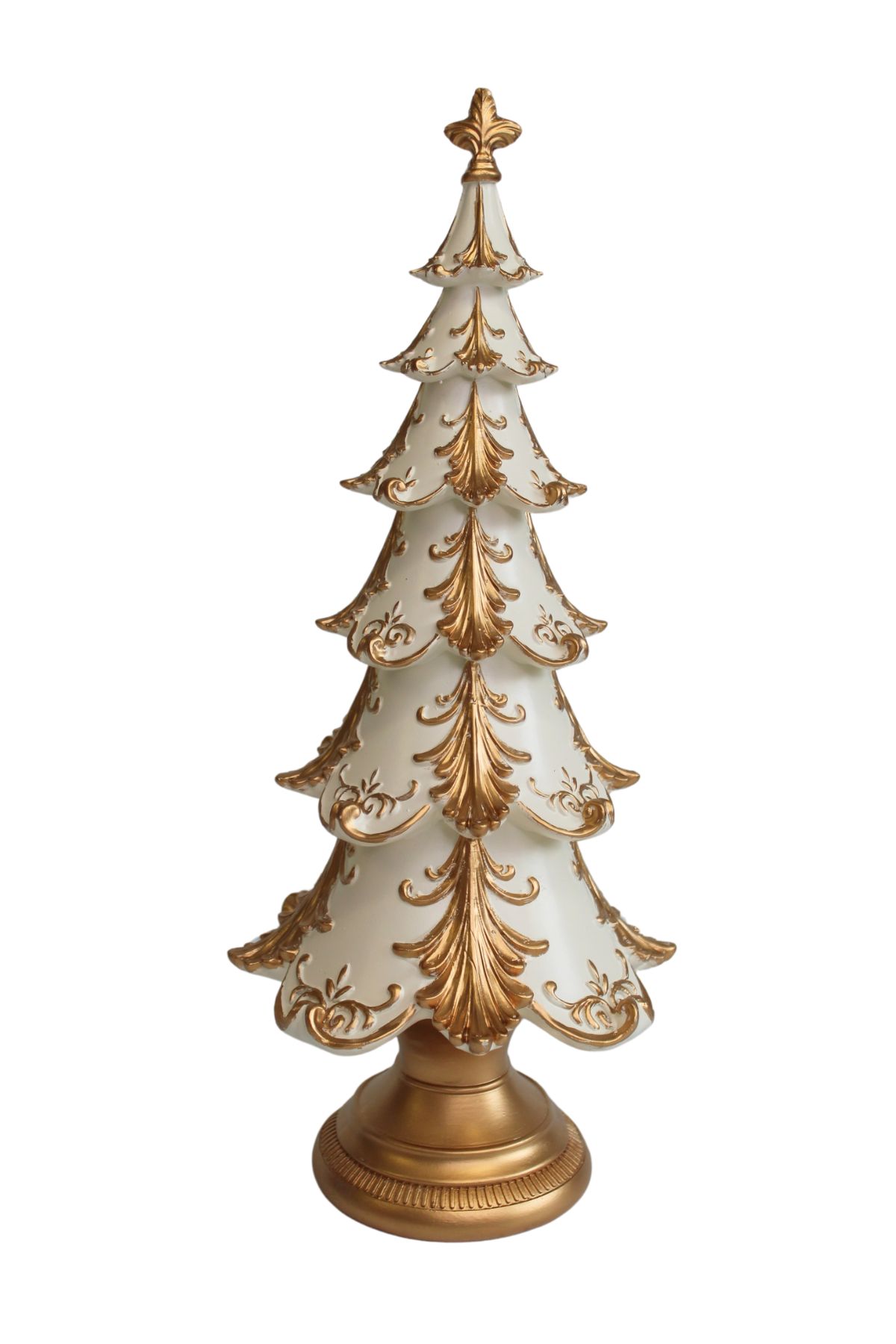 Tento stromček z luxusnej krémovo-zlatej vianočnej kolekcie je ideálny na umiestnenie na sviatočný stôl,krb alebo poličku ako súčasť vianočnej výzdoby.