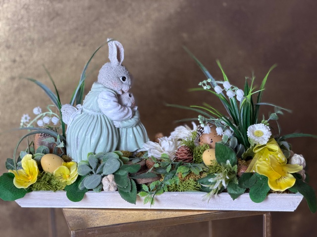 Materská láska – dekoračný aranžmán so zajačikmi 47x22x23cm