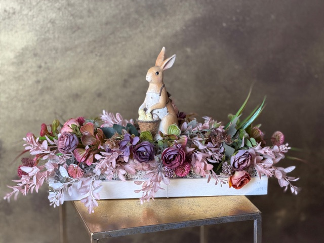 Romantická záhrada – aranžmán so zajačikom 50x26x25cm