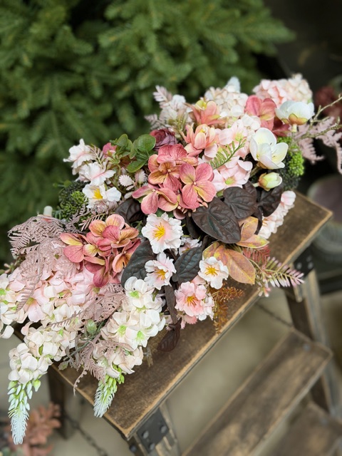 Ružový aranžmán v lodke II. 65x30cm