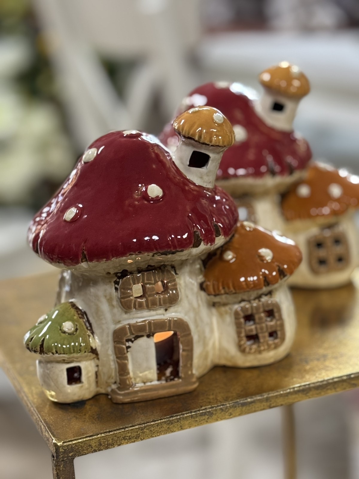 Keramický domček na čajovú sviečku v tvare muchotrávky