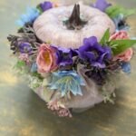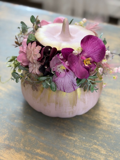 Tekvicový aranžmán ružovo-zlatý 27x22x20cm