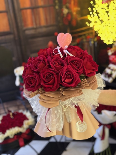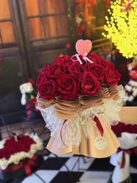 Romantická kytica z umelých červených ruží