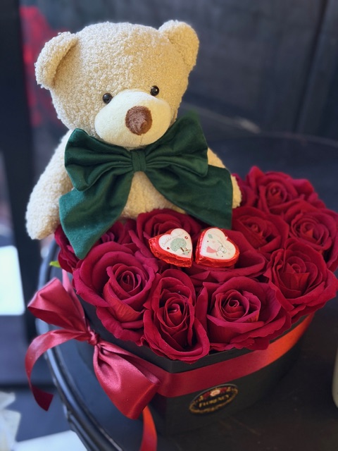 Valentínsky kvetinový box s macíkom