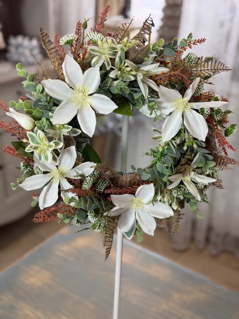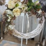 Veniec na dvere s magnóliou bielo-zelený 40cm