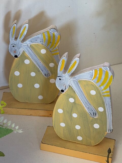 Drevený zajačik s vajíčkom – žltý