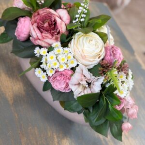 Srdiečkový kvetiný box z umelých kvetov