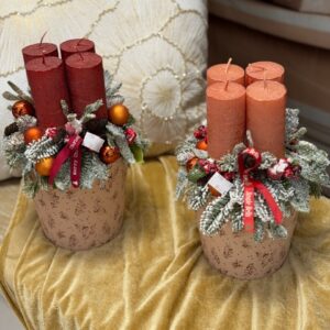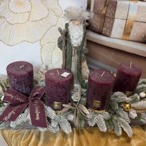 Vianočný aranžmán s bordovými sviečkami 24x26cm